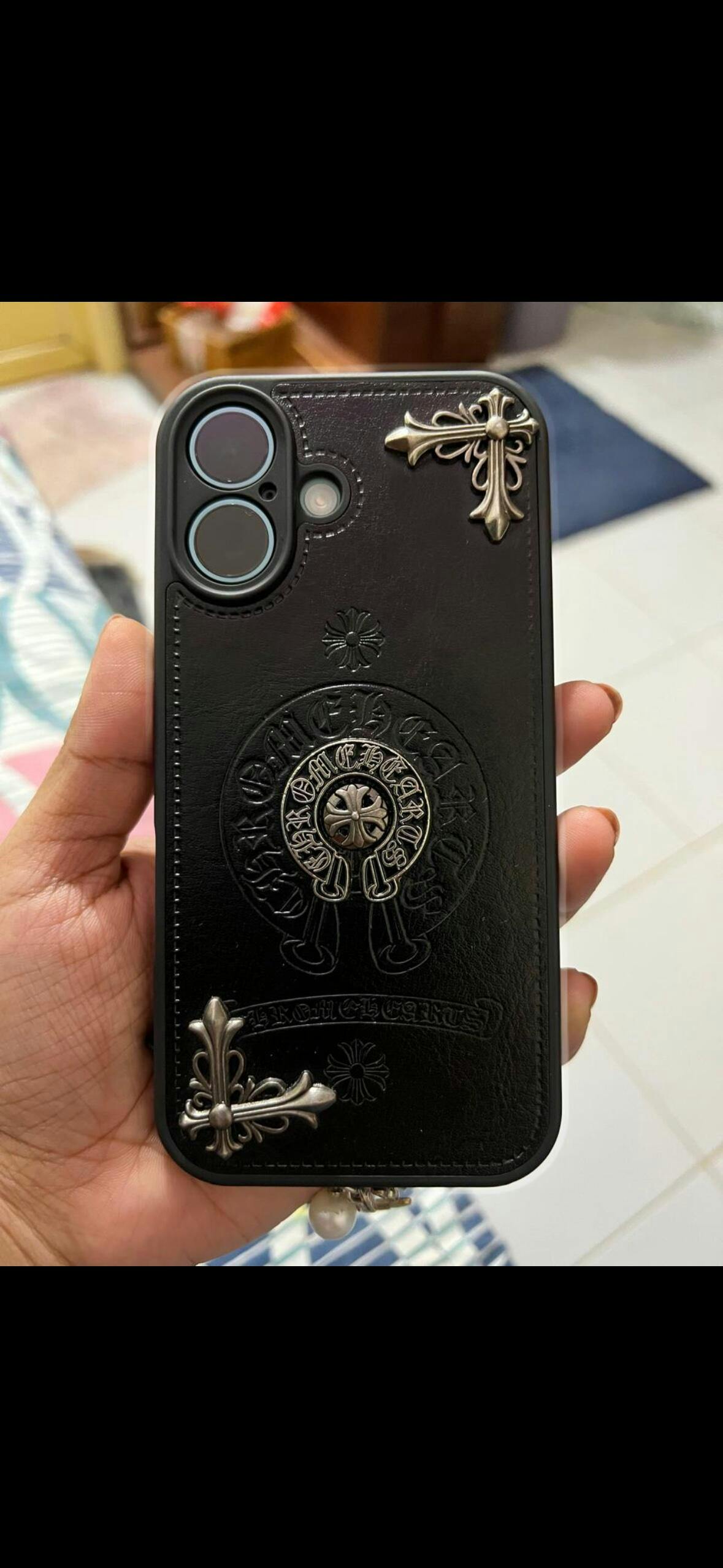 “Elevate your iPhone’s style with the Y2k Black Chrome iPhone Cover. Designed for durability and luxury, this sleek case features intricate gothic-inspired designs, offering exceptional protection without compromising on elegance. Perfectly tailored for a snug fit, it keeps your phone safe from drops, scratches, and daily wear. Stand out with a statement piece that combines bold aesthetics and practical functionality. Shop now and make your iPhone as unique as you are!”